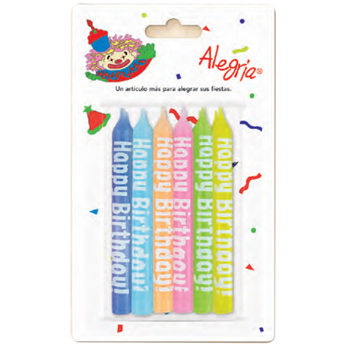 SKU: 84-059 VELAS DE CERA IMPRESAS COLORES HAPPY BISTHDAY 12PZ INNER CON 24 PIEZAS