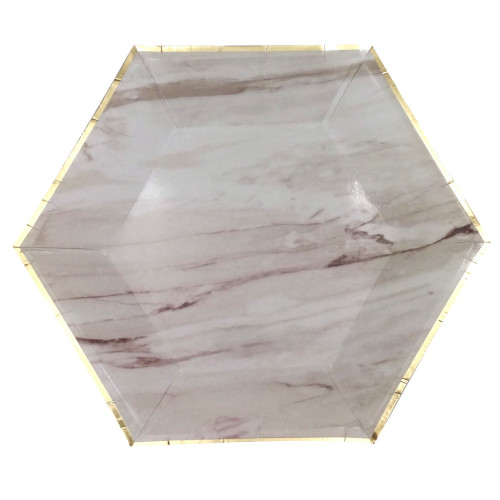 PLATO CARTÓN EXAGONAL MARMOL CAFE