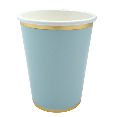 VASO AZUL ORILLA ORO